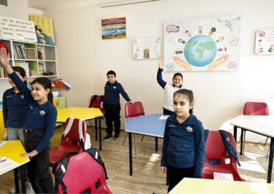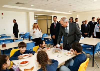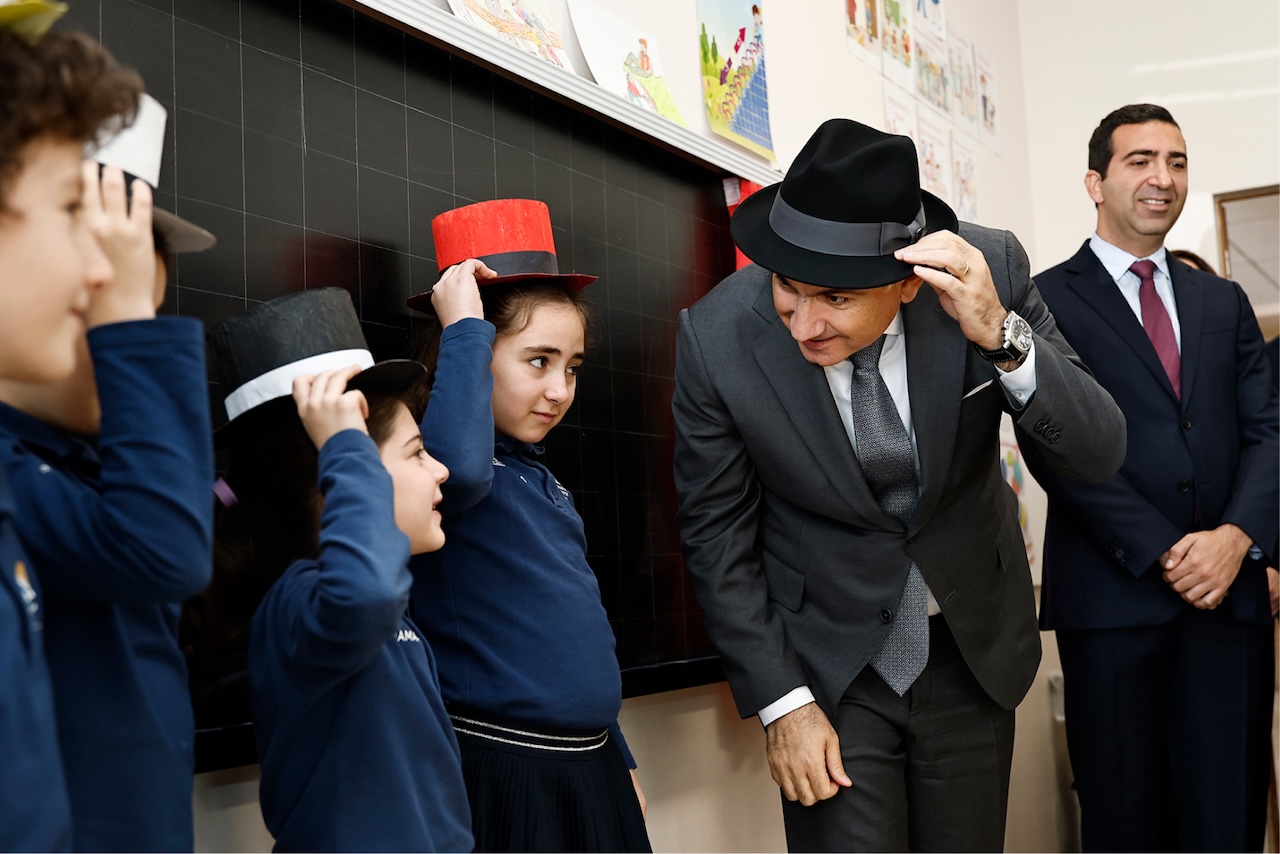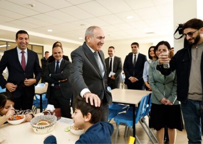 Նիկոլ Փաշինյանը՝ Կրթության, գիտության, մշակույթի և սպորտի նախարար Ժաննա Անդրեասյանի, ՀՀ սփյուռքի գործերի գլխավոր հանձնակատար Զարեհ Սինանյանի և AMAA-ի Հայաստանի գրասենյակի ներկայացուցիչների ուղեկցությամբ շրջայց է կատարել դպրոցում, ծանոթացել կրթական գործընթացին և ստեղծված պայմաններին:
